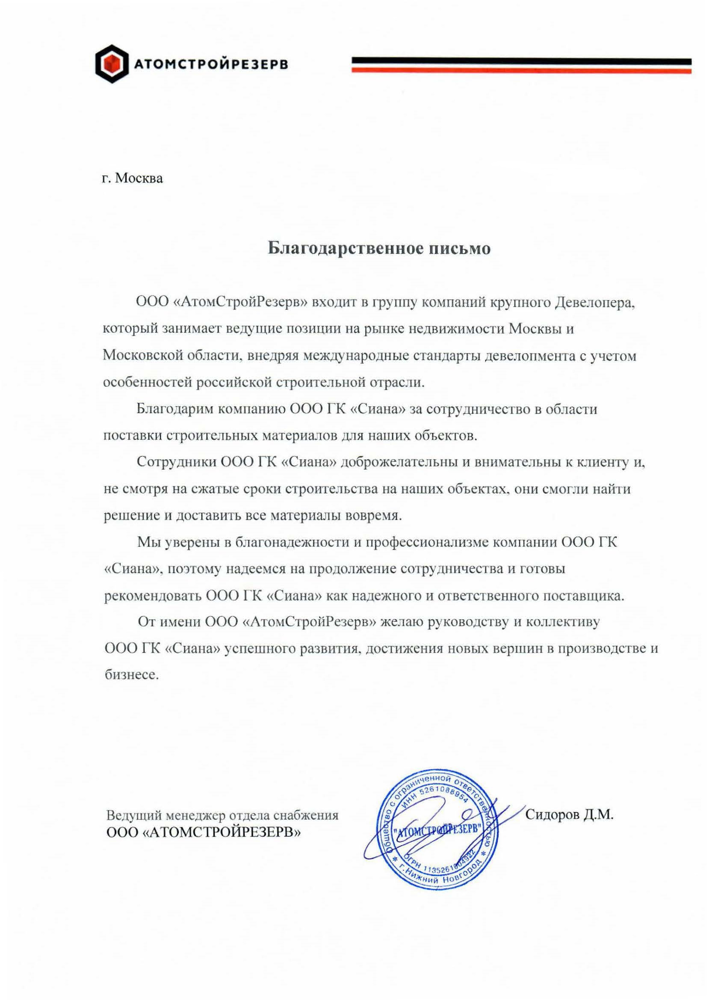 Благодарственные письма